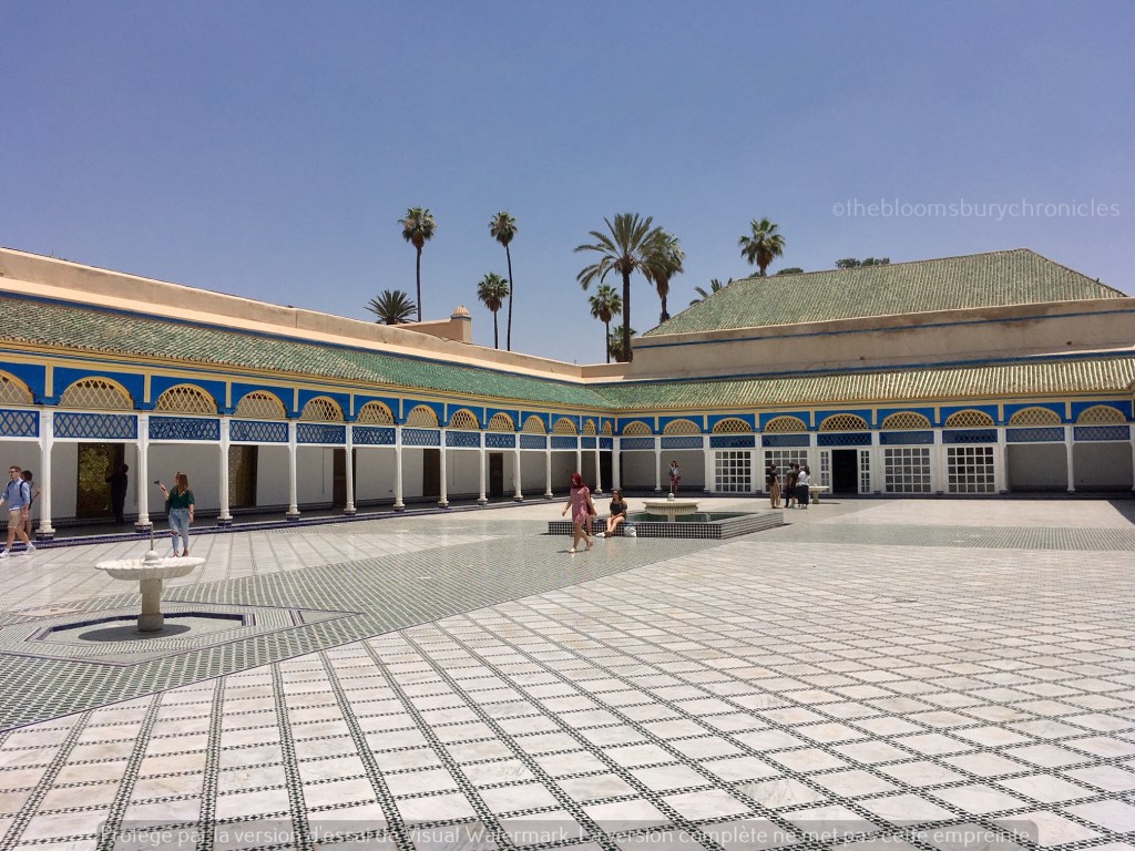 Le premier jour fut consacré à la visite du célèbre Jardin Majorelle et du Palais Baya. Si vous n’êtes jamais allés à Marrakech, le Jardin Majorelle est définitivement l’un des plus beaux endroits à visiter. Il tire son nom du peintre Jacques Majorelle qui y élut domicile au début du 20e siècle et y laissa son empreinte, le fameux Bleu Majorelle. Tombé par la suite à l’abandon, il fut racheté par 2 amoureux du Maroc : Pierre Bergé et Yves Saint Laurent. Magnifique jardin botanique, il abrite aujourd’hui de nombreuses espèces de plantes ainsi qu’un mémorial dédié à Yves Saint Laurent et Pierre Bergé. L’entrée est de 70 dirhams (un peu moins de 7€) , comptez un petit peu plus si vous souhaitez aussi visiter le musée berbère.